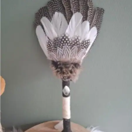 Onze smudge veren worden met zorg en aandacht handgemaakt, vooral met veren die op een natuurlijke manier tijdens de rui zijn gevonden. Op de foto’s zie je voorbeelden van eerder gemaakte smudge veren. Je kunt er één bestellen vergelijkbaar met die afgebeeld, maar we kunnen ook een persoonlijke waaier voor je samenstellen. Zo ontstaat een uniek stuk dat helemaal bij jou past, zowel in uitstraling als in energie.